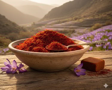 The Golden Essence of Flavour. Finest quality saffron threads known for their deep red colour, distinct aroma, and subtle earthy flavour. The ultimate luxury spice for gourmet dishes.